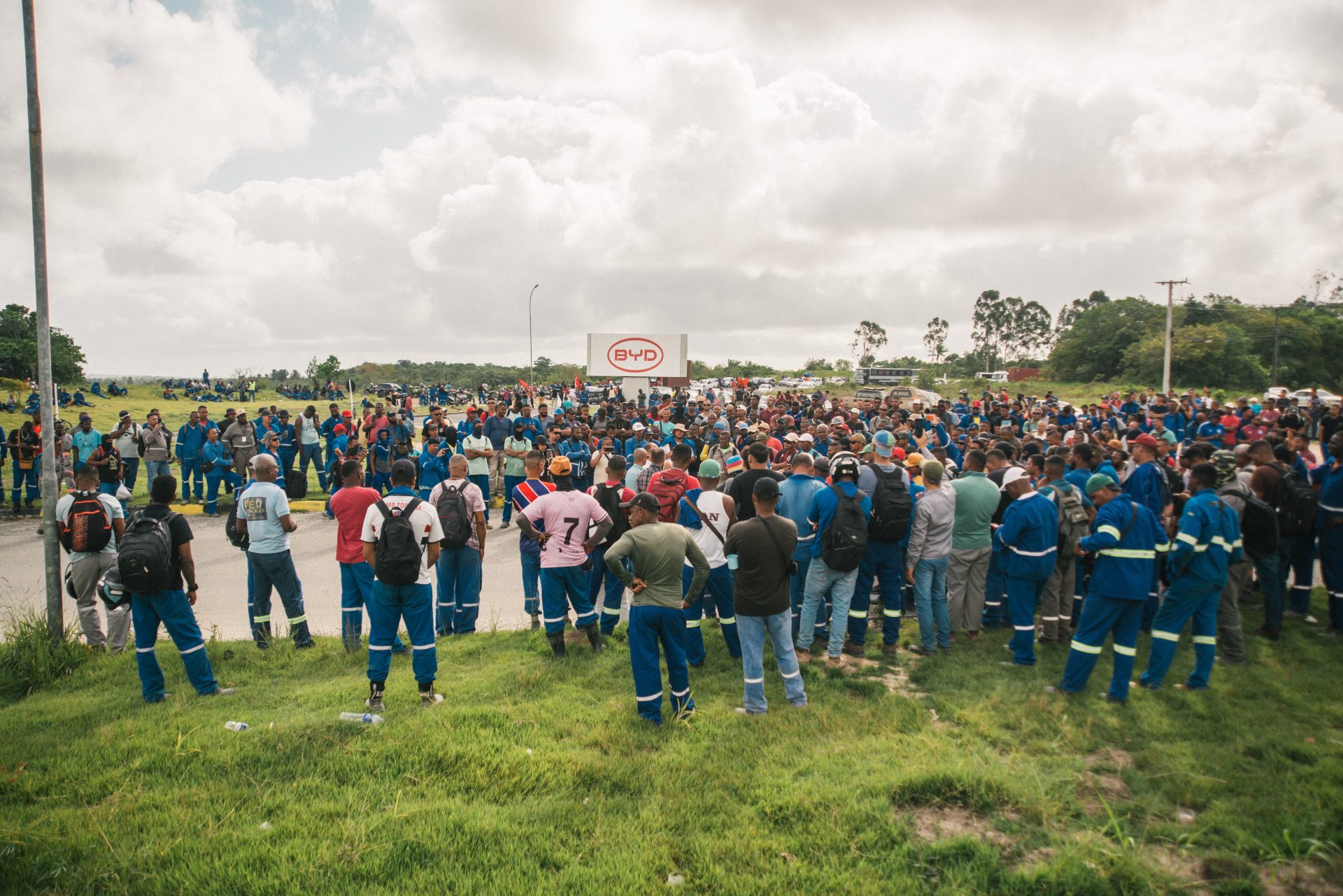 Cerca de 2 mil trabalhadores estão em greve por tempo indeterminado até terem suas reivindicações atendidas pelas empresas terceirizadas da construção civil na planta da BYD Camaçari, na Região Metropolitana de Salvador.
