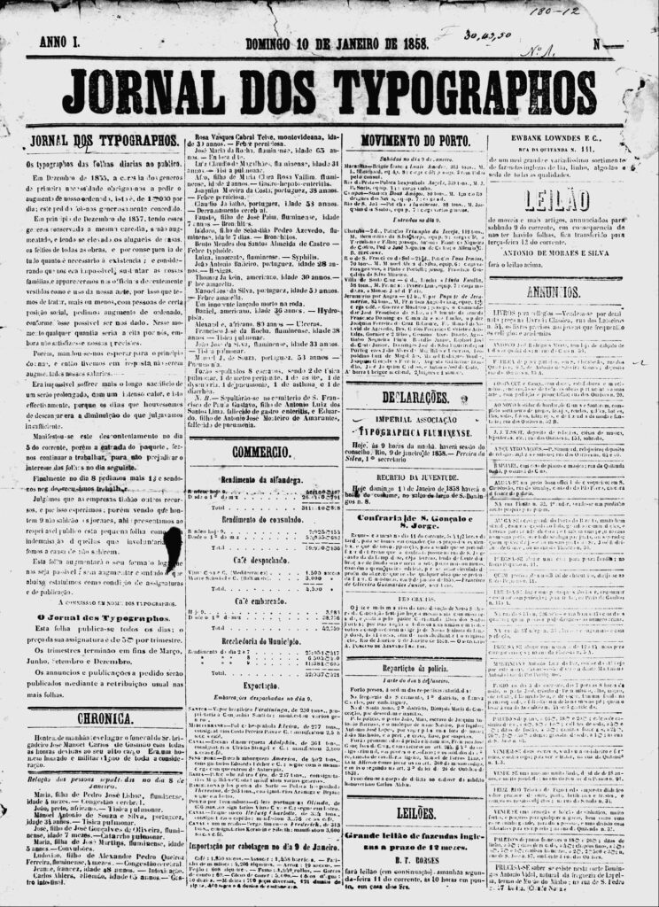 A Associação de Tipógrafos Fluminenses foi além do assistencialismo mutualista. Da solidariedade mútua nos casos de mortes e acidentes dos associados, criou uma biblioteca e o “Jornal dos Typographos”, classista, sustentado pelos próprios trabalhadores. Com papel importante na agitação e propaganda da primeira greve operária do país, em 8 de janeiro de 1858 na qual gráficos e compositores paralisam a imprensa da Capital Imperial.  Foram 32 compositores do Jornal do Comércio, 22 do Diário do Rio, 6 do Correio Mercantil. O “Jornal dos Typographos” fazia denúncia das péssimas condições de vida e salário, dos abusos nas fábricas e oficinas e conclamava a classe a “derrotar o “status quo”.