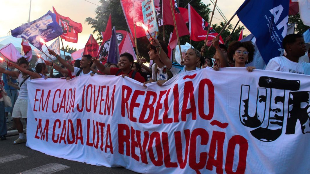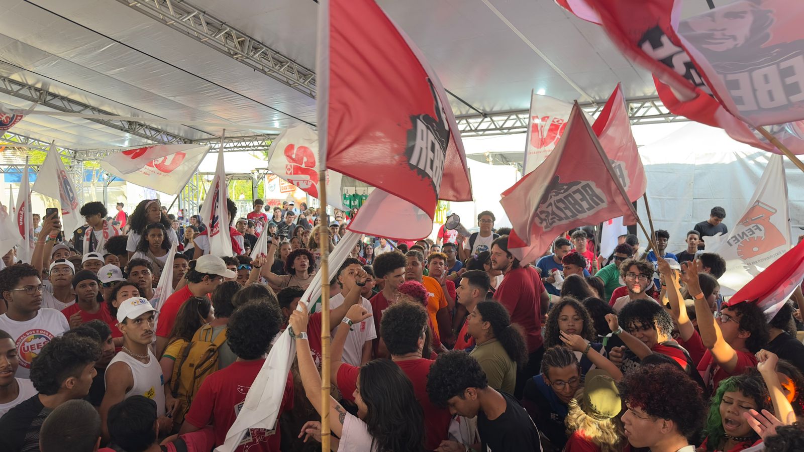 JUVENTUDE – O segundo dia do 46º Congresso da UBES (CONUBES) foi marcado com um importante ato contra a militarização das escolas e o aprofundamento das diferenças na política entre o campo de oposição e do imobilismo. Durante a manhã desta sexta (17/04) ocorreram cinco debates, onde a juventude debateu o fim da escala 6×1, o avanço do fascismo, orçamento para educação, democracia e soberania no Brasil e no mundo e a militarização das escolas.